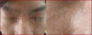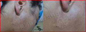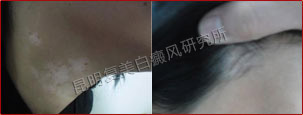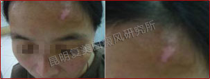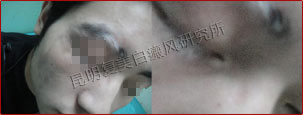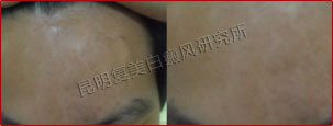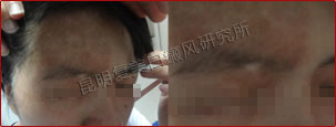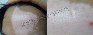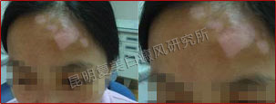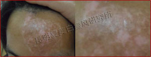 患者的白斑处于稳定期,分布的位置集中在额头部位,对治疗非常有利。另外患者的病情比较复杂,我们跟踪了解患者的治疗情况并及时的调整制定出相对最好的治疗方案,同时辅助调节患者的饮食结构,有效辅助治疗,增加疗效并避免白斑今后再次复发。