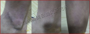 初诊时,患者脚部等多处有白斑,白斑区域有不少色素岛,检测发现患者腿部的白斑有部分处于发展期,扩散迹象比较严重。