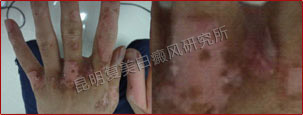 患者由于早期没有及时治疗,导致白斑逐渐扩散开来,幸好他没有接受过类似外用药、偏方等不正规治疗,机体还未产生抗药性,所以在我院接受规范化治疗后,白斑恢复十分迅速,疗效很明显。值得注意的是,患者患有乙肝疾病,在治疗时更要区别对待。