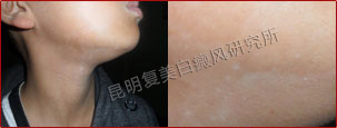 患者是本月接诊距离最远的,来院时患者表示因为听亲戚介绍说昆明复美治疗白癜风好,才不远千里来进行治疗。患者发病时间较短,治疗过程中也很配合,所以取得的效果也很明显。在这边要提醒白癜风患者,在出现皮肤异常时,尽早选择专业的医院科学治疗。