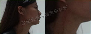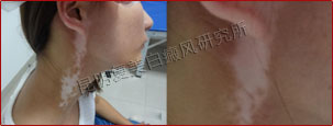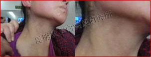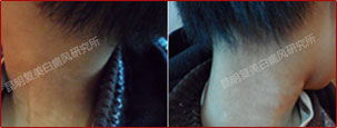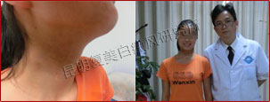 10周后,患者颈部和下颌的白斑已经看不见,跟踪数据显示白斑区新生的黑色素逐渐恢复成正常的肤色。