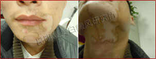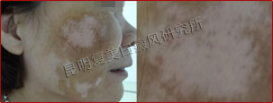 患者经过8周的治疗,有复发迹象的白斑被控制,患者脸部的白斑被黑色素覆盖,并恢复了正常的肤色。