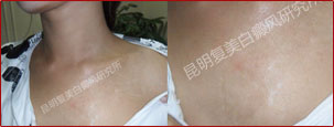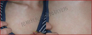 通过二个月的物理治疗和辅助治疗(包括饮食、心理等),患者胸部的白斑已明显消失。在各项数据显示下,患者的白斑已完全消失,体内内分泌、自身免疫恢复正常,只要日常做好必要的防护措施,可以有效抵制白癜风复发。