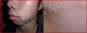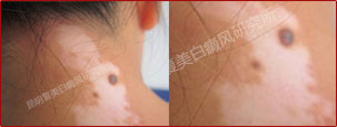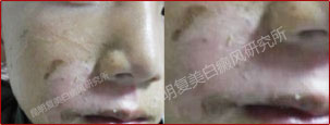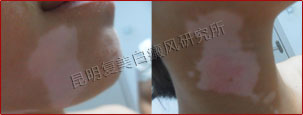 初诊时,患者面部白斑局限性分布,且没有散发到其他位置,但是白斑区域的黑色素脱失较严重,需及时治疗。