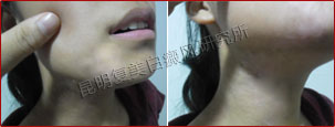 308nm准分子光治疗系统配合食物疗法有效的阻止了白癜风的继续发展。经过三个疗程的治疗后,白斑面积不断内缩。由于嘴角软组织的特性,针对性采用靶向无针介入疗法进行治疗。而为了更好的巩固颈部治疗效果,配合使用儿童药离子渗透技术进行治疗。