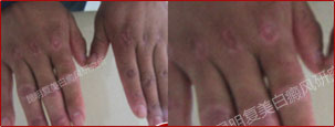 患者的白斑分布在指关节处,属于摩擦几率最多的部位。加上患者的工作环境主要是维修汽车,所以工作环境对患者的病情影响较大。但总体来说患者的就诊意识是有的,积极的配合治疗,在短期内效果也是明显的。