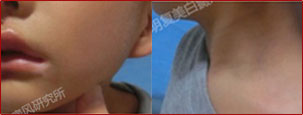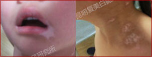 患者年纪小,且白斑面积大,一定程度上增加了治疗难度。所以提前了解了患者的生活习惯,精确检测了患者的发病病因,确定了患者白斑处的发病状态才针对性的进行治疗。患儿最终的治疗效果还是显而易见的。如今儿童已经成为白癜风群体中重要人群,针对儿童白癜风的治疗,一定要分型分诊,千万不能千人一方。