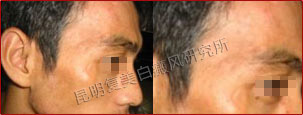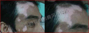 患者的白斑处于稳定期,分布的位置集中在额头部位,对治疗非常有利。另外患者的病情比较复杂,我们跟踪了解患者的治疗情况并及时的调整制定出相对最好的治疗方案,同时辅助调节患者的饮食结构,有效辅助治疗,增加疗效并避免白斑今后再次复发。