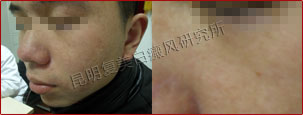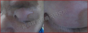 患者由于早期没有及时治疗,导致白斑逐渐扩散开来,幸好他没有接受过类似外用药、偏方等不正规治疗,机体还未产生抗药性,所以在我院接受规范化治疗后,白斑恢复十分迅速,疗效很明显。值得注意的是,患者患有乙肝疾病,在治疗时更要区别对待。